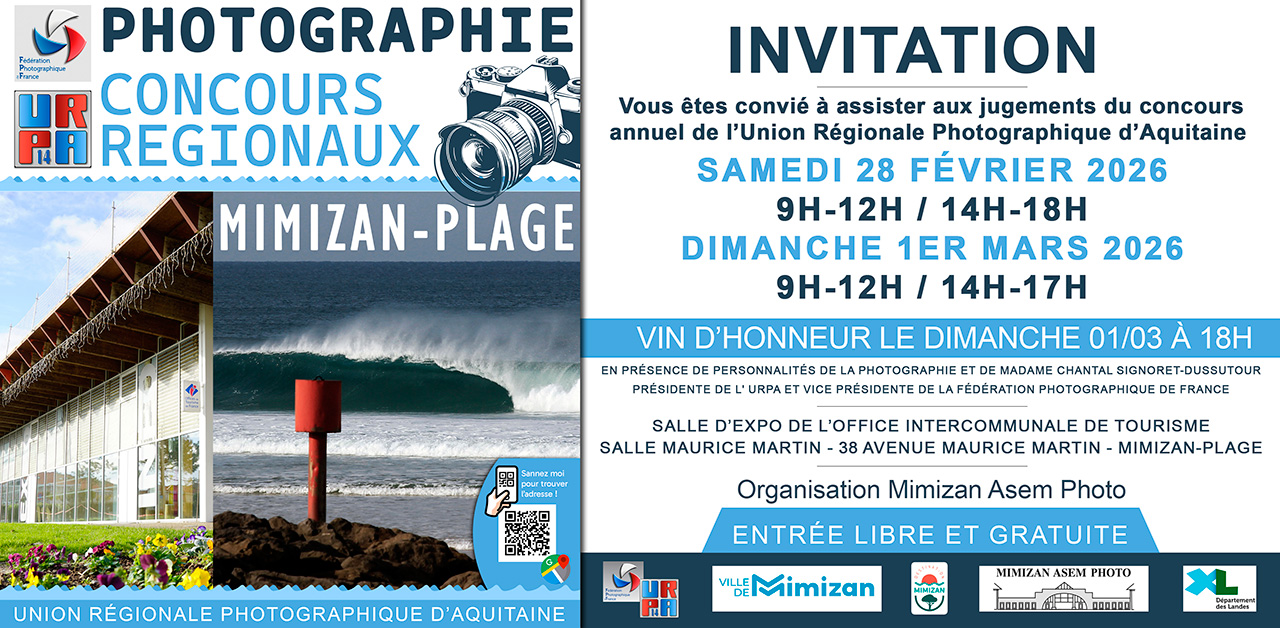 Les concours régionaux se dérouleront : le samedi 28 février pour le papier monochrome et le dimanche 1er mars pour le papier couleur, à Mimizan Plage, organisés par le club Mimizan ASEM Photos